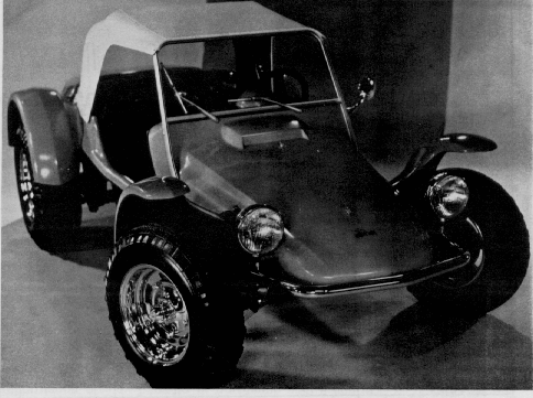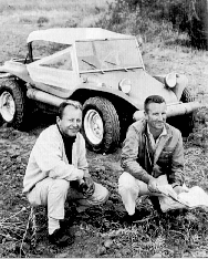It was on Pismo Beach that he first became acquainted with "Dune Buggies". These were V8 powered "water pumpers". These machines were crude and heavy so Bruce took it upon himself to design a lightweight version that would be fun on the beach or in the wilds of Baja. After modifying a Kombi bus with wide rims (called "Little Red Riding Bus") Bruce used his expertise in boat building to design the first fiberglass bodied dune buggy.