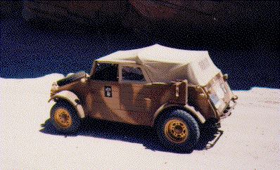The last vehicle in the Manx fleet is the Kublewagon . This car is designed to be a replica of the German Desert Staff car of WWII and is built on a full length floorpan. This car was featured in an issue for Hot VW's last year. Sadly, there was only one of these cars built. The total number of kits of all types and completed cars was about 7,000.