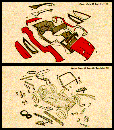 The first 12 cars produced were monocoque bodies that had their own integral frame with VW engine and transmission (Bruce has restored and now drives old #4). These cars were expensive and difficult to produce so Bruce re- designed the body to fit on a VW shortened floorpan . As a result, the Meyers Manx started the off-road revolution by building 5,280 Manx kits and several hundred Manx II's - a total of nearly 6,000 Manx kits.