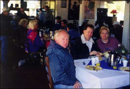 Hacienda Rancho Veronica. Preparing the cars for the early morning run from Hacienda Rancho Veronica (left). It was cold in the morning with frost on everyone's windshield. The rooms were not heated, so getting out of bed in the morning was a "chilling experience"! Breakfast in the Rancho Veronica restaurant was delicious, as was the dinner served the night before (right).