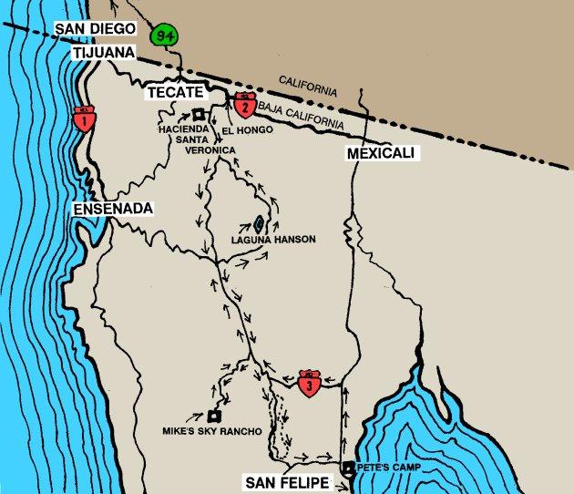 Friday night the club spent the night at Mike's Sky Rancho after a day of off-road adventure. On Saturday the club headed to Pete's Camp in San Felipe, by way of the Diablo Dry Lake west of San Felipe. On Sunday the club returned to Rancho Veronica via the pine forests and lake at Laguna Hansen.