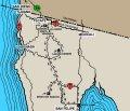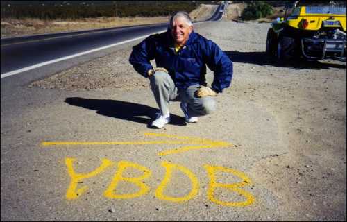 Lost Again? At left is another typical scene during a Manx Club trip in Baja. Our fearless leaders are once again lost and spending time discussing our options. Unfortunately, there are few road signs on the many Baja back-country roads. Plus, local advice is not always accurate. Technology has given us a new option, GPS, which may tell us where we are, but not necessarily how to get where we want to go! The advance scouting team (right) used yellow spray paint on the dirt to provide directions for the rest of the troops. Their directions were even right....sometimes!