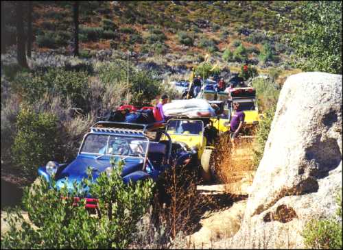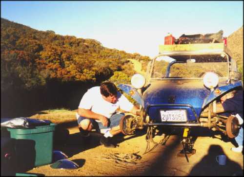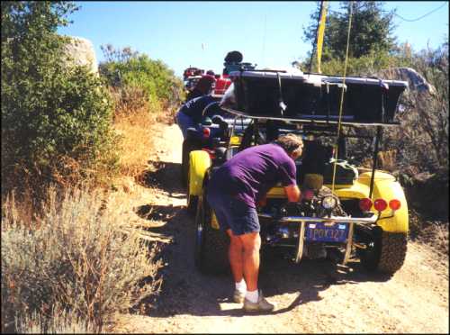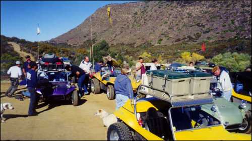 Off-Road with the Manx Club. Typical pictures of the club waiting for a minor repair to be completed. Photos were taken in the San Pedro Matir mountain range on our way to Laguna Hansen. (We gave up our quest for Laguna Hansen on the first day. The club did make it to the lake on the trip back.) While someone else is making repairs it is always a good time to tinker with your own vehicle! The buggy at right had its carburetor swapped during the trip.