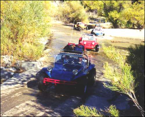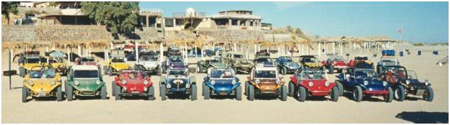 Pete's Camp in San Felipe. The French contingent chose to drive another 250 miles south with the Y.B.D.B. guys. The Manx Club returned north towards Laguna Hansen, Rancho Veronica, and home. During the trip our French visitors got a new nickname, "The French Air Force", because of their tendency to get airborne when coming over rises and exiting "vados". After the trip their buggy was officially "Baja Ready"...with a few dents and scratches to prove it!