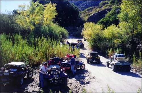 On the road between Rancho Veronica and Highway 3 there is a place where one has to ford a large stream. Unlike the many other stream crossings that day, mud-bog driving skill was not required for a "clean" crossing. The stream crossing afforded us an opportunity to stretch our legs and enjoy the beautiful surroundings. At this point the club was on its way to Mike's Sky Rancho.