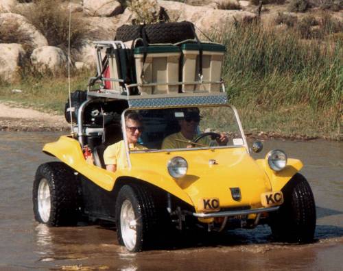 The finished rack actually makes the buggy stronger by stiffening the windshield frame. The dash and hood are held tightly in position and no longer flex. I regularly carry over 200 lbs. on my rack to Baja and back without causing any problems. I have had 500 lbs. on the rack to carry the Manx Dune Buggy Club's lunch and drinks to remote picnic spots. The rack also functions as a roof and sunshade which can be easily removed in less than 10 minutes.