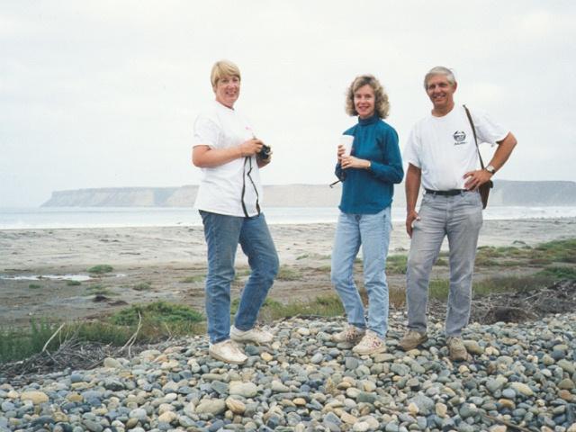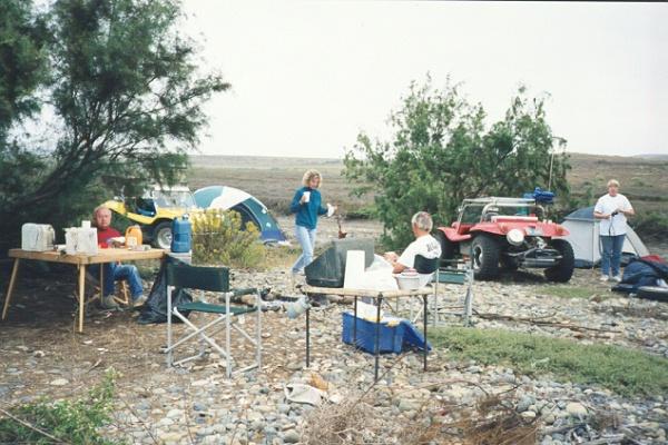 We finally found the Pacific coast highway, then headed out to the beach at Pt. Colenet. After an extended search for the "perfect campsite", we pitched our tents well back from the breakers on cobble-stones. (We need to bring a tide calendar next time!) We were all very crusty from the dusty trip...Bruce Lightner went swimming in the high surf, in the dark, to get clean...Dave played lifeguard with a flashlight.