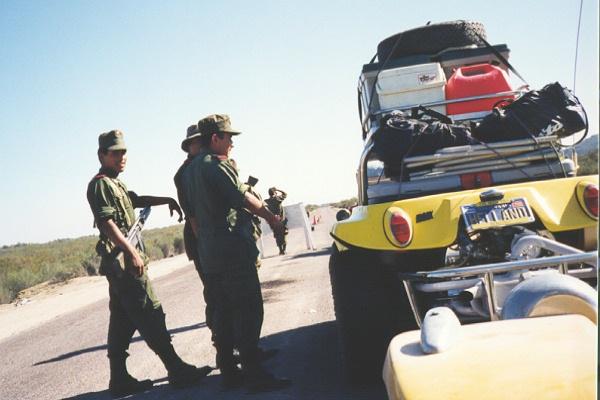 A few miles before the turnoff to Mike's Sky Ranch we encountered one of the many military checkpoints one finds in Mexico. As usual they asked if we had any drugs or guns. (Bruce told them he was sorry, and that he only had beer!) The soldiers were quite taken by Barbara and her command of Spanish...they told Winnie that Barbara was "muy bonita".