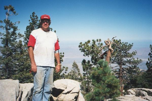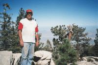 The view from the top weas great! From there one can see both the Gulf of California and the Pacific Ocean (which was covered in low clouds that day). To the east, the topography drops to near sea-level (9,000+ feet) in the space of a few miles. We looked down on Diablo Dry Lake, a great place to off-road, except that it was full of water from the previous weekend's hurricane.