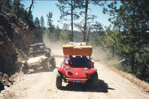 We had our first equipment failure of the trip...Dave's newly constructed roof rack began to settle onto his polished chrome roll-bar...bummer! A little road-side engineering fixed the problem. (Over the course of the trip, Dave would pile more and more stuff on his new roof rack, until he had to begin carefully checking clearance on overpasses.)