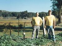 After lunch, we headed south to Rancho Veronica, a campgound/resort about an hour south of Tecate and a few miles off the paved road. The resort (as usual) was filled with a number of motorcycle riders. Dave and Barbara took a room...with hot showers. Winnie and the Bruce's opted for a (cheaper) campsite in the oak trees...cold showers only. We all eat dinner in the resort's resturant. We made a camp fire after dinner...with oak flooring we found stacked under an oak tree! We were immediately adopted by the local dogs. By morning we had a full campsite...a number of Mexican families arrived in the night to camp for the weekend.