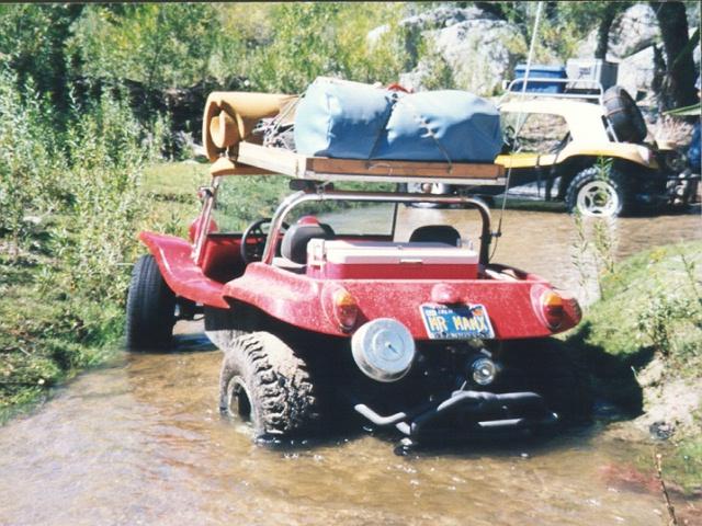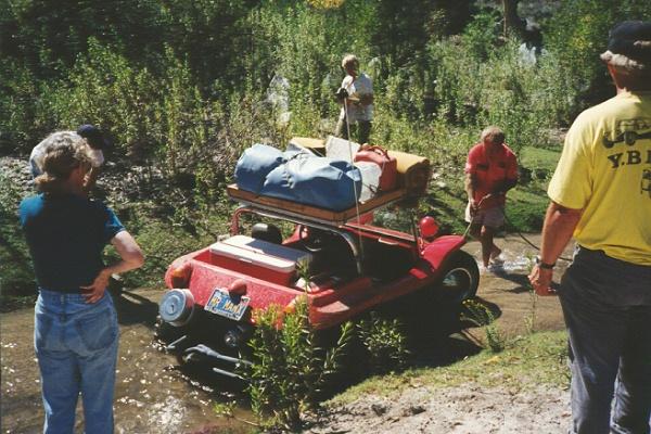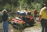 Bruce Meyers learned why there was a cement berm across the stream after he convinced Winnie to "drive Old Red into that sandbar so we can get a photo over there". Oops...the streambed was made of "quicksand"!